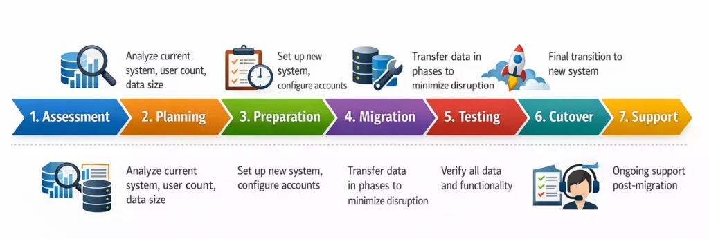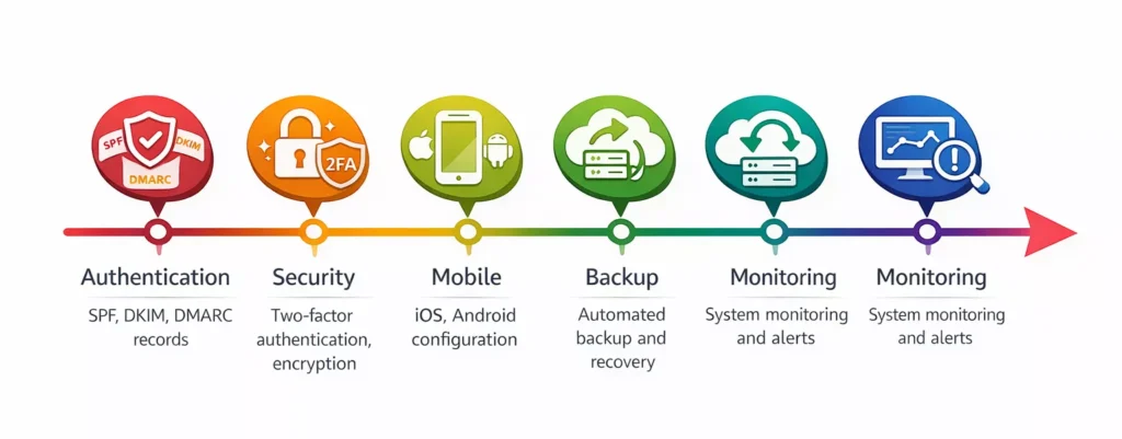 Not migrating but need proper email setup? We configure and optimize your email system for maximum performance, security, and user productivity.